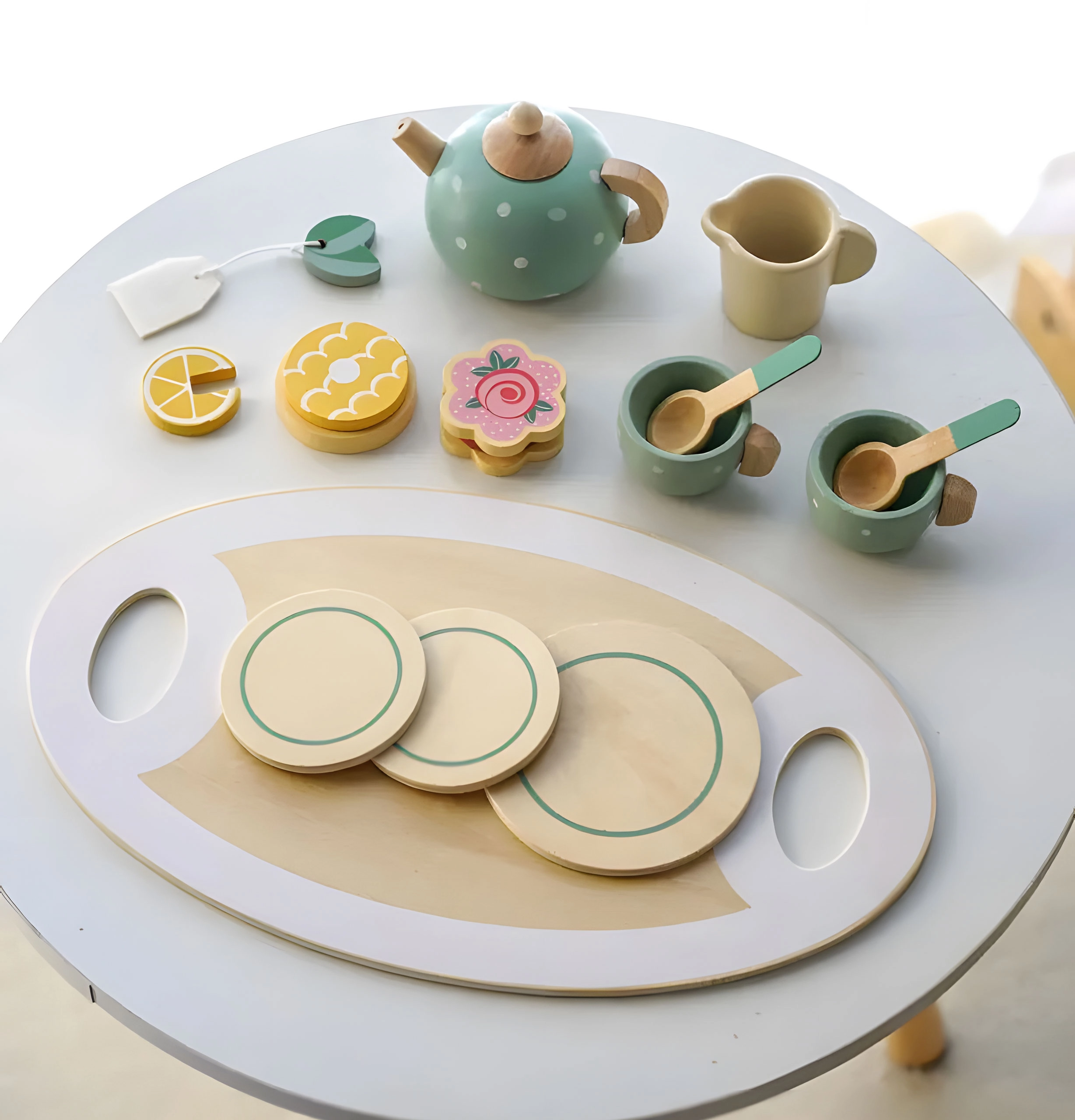 Barvit set vsebuje vse, kar otroci potrebujejo za svojo namišljeno čajanko s prijatelji.