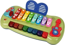 Omogočite vašemu otroku priložnost, da se nauči osnov glasbe s to zabavno otroško klaviaturo in ksilofonom. Barvit dizajn in različne velikosti tipk stimulirajo vid in zagotavljajo zabavo. Ksilofon ponuja osem tonov, ki jih je mogoče igrati s paličicami ali pritiskanjem tipk kot na klavirju, s čimer se oddajajo prijetni zvoki, ki podpirajo sluh.