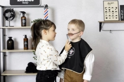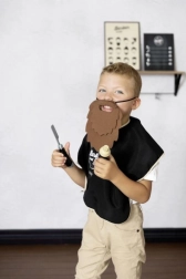 Brivski set Moja prva brada je popoln za male navdušence, ki želijo odkriti umetnost brivstva! Zahvaljujoč filc bradi s sistemom ježkov lahko ustvarite mnogo različnih kombinacij oblik in dolžin. Otroci se lahko zabavajo pri igri vlog in posnemanju pravega brivskega okolja.