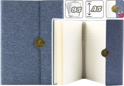 Praktične podrobnosti, kot sta elastika za pisalo in tekstilen označevalnik, povečujejo udobje uporabe. Na prvi strani je prostor za osebne podatke, zato zvezek zlahka prepoznate. Zahvaljujoč formatu A5 (21 × 15 cm) se udobno prilega v torbico ali nahrbtnik, hkrati pa nudi dovolj prostora za pisanje.