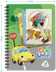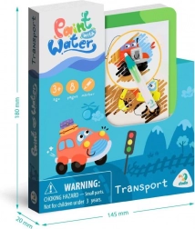 Kreativni blok s prevoznimi motivi prinaša otrokom neskončno zabavo: napolnite vodni čopič, potegnite po strani in opazujte, kako se pojavijo intenzivne barve in detajli avtomobilov, vlakov ali letal. Po sušenju se ilustracije vrnejo v prvotno stanje in otroci lahko slikajo znova.