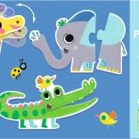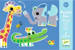 DJECO Puzzle Duo Živali je idealna igrača za najmlajše otroke. Komplet vsebuje 6 dvodelnih sestavljank, ki pomagajo razvijati fino motoriko in logično razmišljanje. Veliki deli sestavljank so enostavni za prijem, kar jih naredi primernimi za majhne ročice.