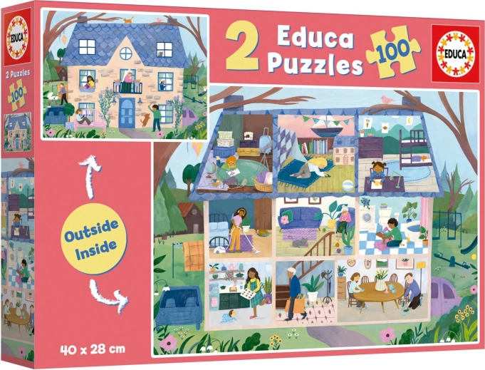 Uživajte v zabavi za otroke in starše z dvojnim paketom sestavljank blagovne znamke EDUCA. Vsaka sestavljanka ima 100 kosov in po sestavljanju meri približno 40 × 28 cm. Tema »Outside, Inside hiša« otroke popelje skozi življenje v hiši od zunaj in od znotraj ter spodbuja razvoj domišljije, koncentracije in fine motorike.