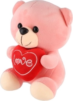 Ta rožnati medvedek drži rdeče srček z napisom »love« in takoj osvoji srca malih in velikih. Mehka plišasta tkanina in skrbno izvezeni detajli ga naredijo varnega in prijetnega spremljevalca za vsakodnevno crkljanje.
