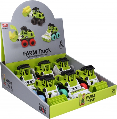 Otroški kombajn 14 cm z vztrajnikom na vseh štirih kolesih. 3 različice, realistična izvedba, display box 6 kos. Odlična zabava za male kmete.
