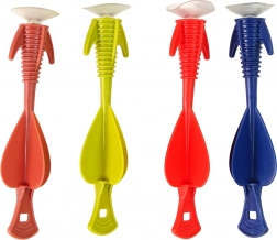 Frača je izdelana iz vzdržljivih materialov, odobrenih za varno uporabo, ter opremljena s udobnim penastim ročajem. Del pakiranja so štirje raznobarvni gumijasti izstrelki, ki zagotavljajo varno igro zahvaljujoč priseskom.