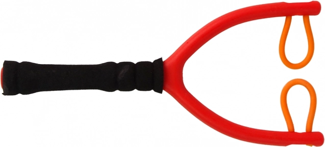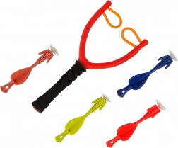 Ta frača za mehke gumijaste izstrelke s priseskom zagotavlja otrokom odlično zabavo v zaprtih prostorih in na prostem. Dovolj je, da izstrelek postavite med dva gumijasta nosilca in ga pripravite na izstrelitev. Z raztegom gume, namerjanjem in sprostitvijo izstrelek leti v izbrano smer, kar spodbuja motorične spretnosti.