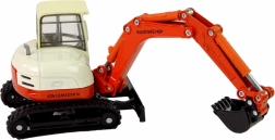 Ta kovinski model bagra je idealna izbira za vsakogar, starejšega od 3 let, in za vse zbiratelje. Model v merilu 1:50 ponuja natančne podrobnosti, vključno s kabino z vrtljivo platformo in premičnim krakom z žlico. Zahvaljujoč gumijastim gosenicam model izgleda kot pravi stroj in je idealen za ure zabavne igre.