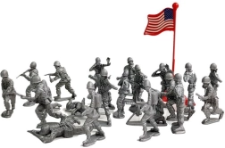 V kompletu so vojaki v treh barvah (srebrna, oranžna, zelena) in štiri zastave (Nemčija, Združeno kraljestvo, ZDA, Japonska), ki pomagajo pri razdelitvi enot in razvijanju domišljije. Vse je izdelano iz atestirane plastike in ustreza standardu EN71.