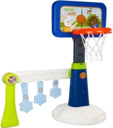 Stojalo je stabilno zaradi osnove, ki jo je mogoče napolniti z vodo ali peskom. Set je primeren za notranjo in zunanjo uporabo, ima CE certifikat in je idealen za otroke od 3 let. Paket vsebuje vse za takojšnjo igro – koš z mrežo, tablo, žogo in pumpico.