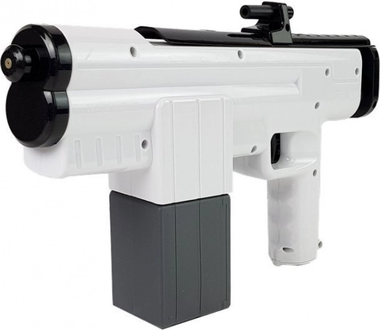 Ta elegantna vodna pištola v črno-beli barvni kombinaciji je idealna za dvoboje na vrtu, na plaži ali ob bazenu. Zaradi kompaktnih mer je odlično vodljiva in natančna, zato jo brez težav obvladajo tudi mlajši otroci. Dovolj je napolniti odstranljiv rezervoar, pritisniti sprožilec in s pomočjo črpalke ustvariti močan vodni curek.