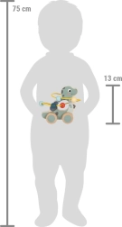 Dinozaver ponuja igro s premikanjem po kolesih in interaktivni labirint s kroglicami, kar razvija tako fine kot grobe motorične sposobnosti otrok.