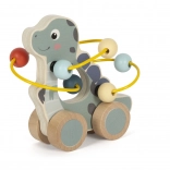 Odkrijte čar prazgodovinskih bitij s to igračo. Leseni dinozaver ni samo odličen spremljevalec za igranje, temveč tudi pripomoček za razvoj finih in grobih motoričnih veščin. Otroci lahko premikajo dinozavra po tleh, ga potiskajo ali uživajo pri premikanju kroglic v labirintu.