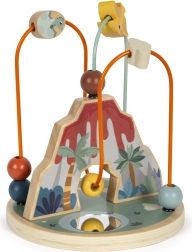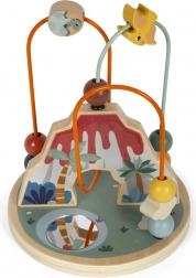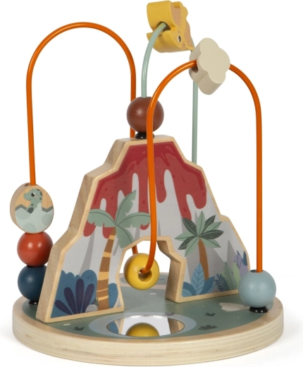 Ta labirint z motivom dinozavrov predstavlja idealno igračo za razvoj otrok. Uči jih koordinacije roka-oko in spodbuja kreativnost, medtem ko navdušuje s svojo originalno upodobitvijo vulkanskega ognjenika. Igrača vsebuje dve barvni zanki z raznolikimi perlami in centralnim ogledalcem, nameščenim na osnovi, tako da je vse vidno iz različnih kotov.