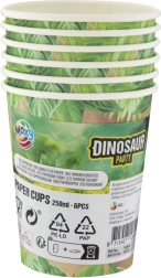 Vnesite v svojo zabavo džungelsko vzdušje s papirnatimi kozarčki s podrobnim dinozavrskim potiskom. Zahvaljujoč prostornini 250 ml udobno postrežejo najljubše pijače otrokom in odraslim, po dogodku pa jih preprosto odvržete – brez pomivanja in skrbi. Opozorilo: izdelek ni igrača.