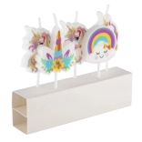 Podarite svoji zabavi pravljičen pridih z 3D svečkami Samorog. Vsaka svečka ima prikupen dizajn in prijetne pastelne barve, ki lepo izstopajo na vsaki torti. Pakiranje je kompaktno in praktično, svečke so dobro zaščitene v odprti škatlici.