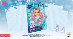 Privlačen motiv deklice in ljubkega kužka na modrem ozadju s snežinkami polepša vsak dnevnik.