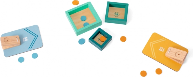 Zabavna in napeta namizna igra za 2 igralca od 6 let naprej, v kateri odločajo natančen cilj, hitra reakcija in taktika. S pomočjo izstrelitvene rampe izstreljujete žetone na tri tarče različnih velikosti – manjša kot je tarča, več točk prinese. Nekateri žetoni imajo dvojno vrednost, zato lahko pametno kombinirate in povečujete rezultat. Odlično za razvoj fine motorike in koordinacije oko–roka.