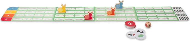 Podajte se na dirko po zeleni progi in odkrijte, kateri polž bo najhitrejši! Igralci premikajo svoje polže glede na met kocke in učinke kart. Pazite – nekatere karte vas poženejo naprej, druge vas lahko upočasnijo z rjavim listom ali vas prisilijo, da zamenjate mesto s tekmecem. Vsaka partija je drugačna, napeta in pregledna tudi za male igralce.