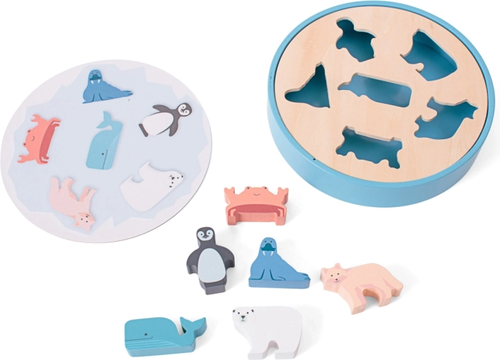 Ta kakovostna lesena vstavljanka z živalmi (tjulenj, polarni medved, rak, pingvin, lisica in orka) ponuja idealno prvo sestavljanko za male raziskovalce. Koščki so robustni, dobro sedejo v otroško roko in se zaradi jasnih obrisov ter ilustracij zlahka položijo na svoje mesto.