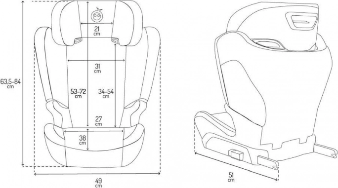 - Viden indikator za potrditev pravilne namestitve med osnovo ISOFIX in avtosedežem, ki zmanjšuje tveganje nepravilne montaže