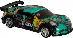 Vstopite v svet akcijske zabave s kompaktnih dirkalnim avtom NIGHT WOLF. Zahvaljujoč gumijastim pnevmatikam z odlično oprijemljivostjo se avto gladko premika po trdih in mehkih površinah ter ne opraska tal. Svetlobni učinki dodajo vožnji realističnost, privlačna modro‑zelena izvedba pa takoj pritegne pozornost.