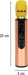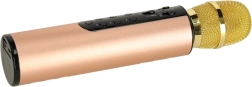 Pojte kjerkoli in kadarkoli s tem brezžičnim karaoke mikrofonom v zlati izvedbi. Ponuja Bluetooth povezavo, vgrajen zvočnik 2×5 W, režo za pomnilniško kartico in AUX. Zahvaljujoč bateriji 2000 mAh boste uživali 5–6 ur zabave, enostavno upravljanje z gumbi in čist, stabilen zvok z efektom reverb.