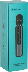 Sodoben karaoke mikrofon združuje prenosni zvočnik in mikrofon v enem. Brezžična tehnologija Bluetooth z dosegom do 10 m omogoča udobno povezavo s telefonom ali tablico, medtem ko reža za pomnilniško kartico in vhod AUX razširjata možnosti predvajanja. Gumbi na ohišju mikrofona poskrbijo za hitro izbiro skladb, nastavitev glasnosti in upravljanje odmeva.