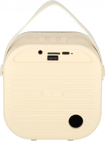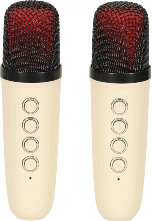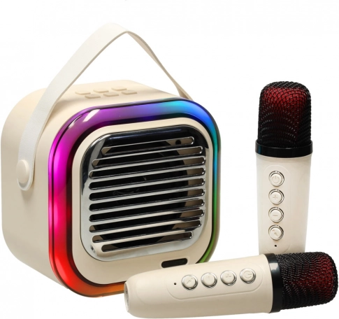 Ta krem karaoke zvočnik spremeni otroško sobo ali dnevni prostor v mini oder. Brezžična povezljivost Bluetooth poskrbi za hitro seznanjanje s telefonom ali računalnikom, medtem ko RGB svetlobni učinki poudarijo vsak nastop. Zahvaljujoč dvema mikrofonoma boste uživali v solih in due-tih s prijatelji.