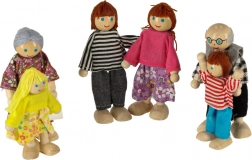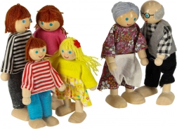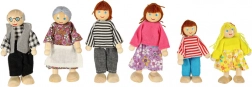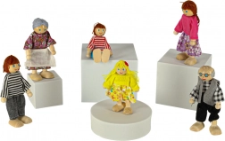 Celotna družinica 6 kosov: stari starši, starši in otroci. Različne višine (pribl. 11,5 cm in 9 cm) podpirajo učenje vlog in družinskih odnosov.