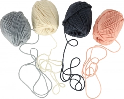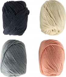Odkrijte veselje do ustvarjanja s kompletom štirih prej v skrbno usklajenih odtenkih (kremna, siva, temno modra, marelična). Zahvaljujoč prijetni mešanici poliestra in akrila se preja ne filca, manj se vozla in lepo drsi po pletilkah ali kvački. Barve se odlično kombinirajo za kontrastne in harmonične vzorce.