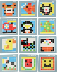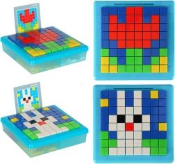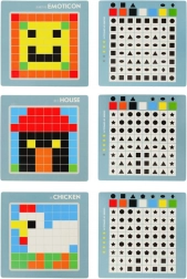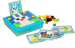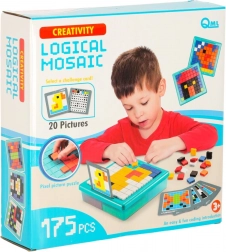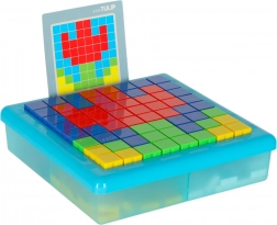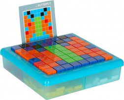 Ta kreativna mozaika je odlična izobraževalna igrača za otroke od 3. leta dalje. Barvni kvadratni koščki se polagajo v mrežo na stabilni plošči, zato si otroci urijo logično mišljenje, prostorsko predstavljivost in koncentracijo. S priloženimi karticami s predlogami lahko izbirate med enostavnejšimi in zahtevnejšimi motivi.