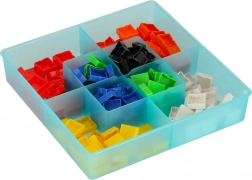 Praktičen plastični zaboj z razdeljenimi predelki ohranja vse komponente pregledno razvrščene. Zato je igra primerna doma, v vrtcu in na poti – hitro postavljanje in pospravljanje je zagotovljeno.