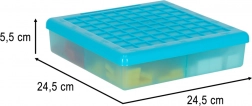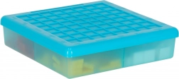 Plastični organizator s pokrovom in razdeljenimi predelki ohranja koščke pregledno urejene ter olajša pospravljanje in prenašanje.
