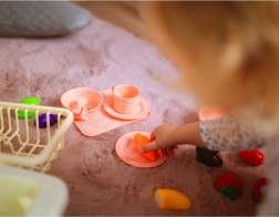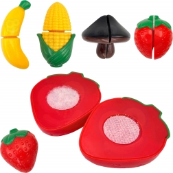 • Bogati dodatki – posoda, pribor, čajnik, deska ter pisano sadje in zelenjava na ježka.