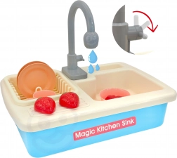 Vgrajena črpalka po vstavitvi 2× AA požene vodo v koritu. Otroci bodo uživali v realističnem izpiranju posode in varni igri brez nereda.