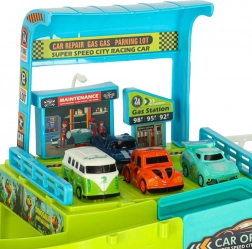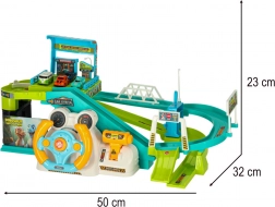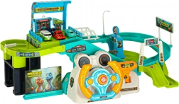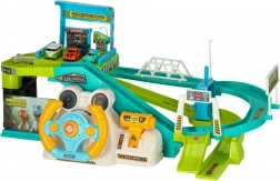 Ta barvita dirkalna steza povezuje domišljijski svet vožnje z razvojem spretnosti. Otroci lahko vodijo avtomobilčke po zavito speljanih progah, uporabljajo ročni ali samodejni dvigalo ter upravljajo volan z zvočnimi gumbi. Del kompleta je tudi zemljevid mesta, ki vabi k zgodbam in lastnim dirkalnim scenarijem.