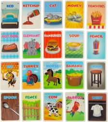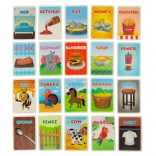 Komplet vsebuje karte z napisi v angleščini, kar je odličen način za učenje novih besed in razvijanje jezikovnih spretnosti.