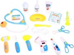 Stetoskop, termometer, otoskop, merilnik krvnega tlaka, injekcija, škarje, skalpel, očala in drugi dodatki – vse za popolno igro zdravnika.