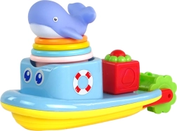 .Če vaš otrok obožuje morske dogodivščine, plavanje v bazenu in v kadi, je ta igrača zanj idealna. Če se vaš otrok upira vsakemu kopanju, ga bo ta pripomoček zagotovo prepričal o prej neljubi dejavnosti, preusmeril njegovo pozornost in bo odslej kopanje povezoval le z veseljem. Nasmejana žabica z različnimi učinki bo vašega malčka tako pritegnila, da ne bo želel iz kadi. Prisrčna plavajoča ladja in kit bosta popestrila igro. Izboljšajte otrokove opazovalne sposobnosti, spomin, domišljijo in razmišljanje! Zabavno zlaganje enega na drugega bo spodbujalo otrokovo tipanje, hkrati pa bo razumel razliko med posameznimi lončki.