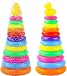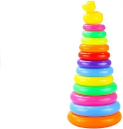 Piramida iz obročkov je klasična igrača, ki zdaj prihaja v čudoviti barvni izvedbi. Pomaga razvijati ne le motoriko in gibalne sposobnosti otroka, temveč tudi koncentracijo, manipulativne veščine, in omogoča prepoznavanje velikosti, razvrščanje po velikosti, barvni odtenki ali po lastnih pravilih in logiki. S to barvno igračo, izdelano iz varne, mehke plastike, se vaš otrok lahko zabava tudi med kopanjem. Na vrhu piramide je postavljena rumena račka, ki še bolj popestri zabavo. Piramida iz obročkov je investicija za leta, ki ne le odpira otroku svet domišljije, ampak ga tudi razvija na več ravneh.