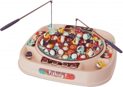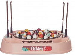 Roza spretnostna igra lovljenja ribic spremeni vsak popoldan v tekmovanje, polno veselja. Po vstavitvi baterij se igralni vrtiljak zavrti, ribice izmenično odpirajo usteca in v ritmu 3 veselih melodij preverjajo hitrost in natančnost malih ribičev. Na straneh plošče so praktični predalčki za odlaganje ulova.