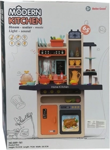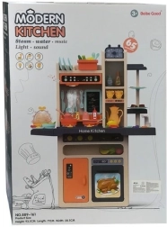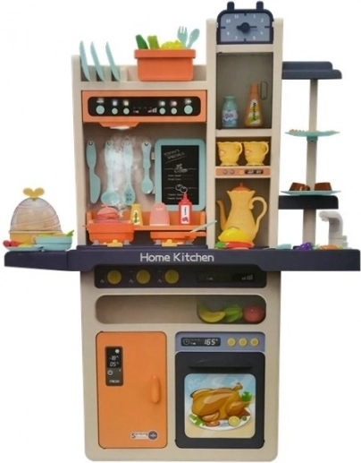 Ta moderna otroška kuhinjica navduši z umirjeno kombinacijo oranžne in kremne barve ter z oblikovanjem, ki spominja na pravo domačo kuhinjo. Zaradi svetlobnih elementov na kuhalni plošči in realističnih zvokov kuhanja se otroci potopijo v vlogo malega šefa kuhinje. Praktične police, kljukice in predelki pomagajo ohranjati red in razvijati navade organizacije.
