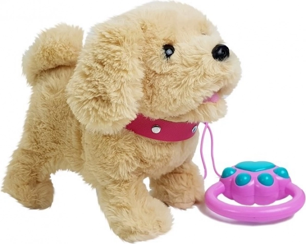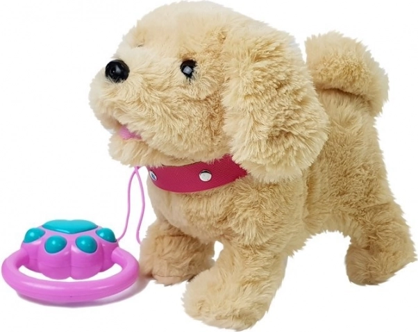 Prisrčen krem plišasti kužek na povodcu bo razveselil vsakega malega ljubitelja živali. Po vstavitvi baterij se kužek sprehaja na povodcu, maha z repom in premika glavico. Priloženi so frizerski dodatki za nego ljubljenčka, zato lahko otroci brez skrbi razvijajo domišljijo in skrbijo za svojega »kosmatinca«. Odlično darilo v darilni embalaži.
