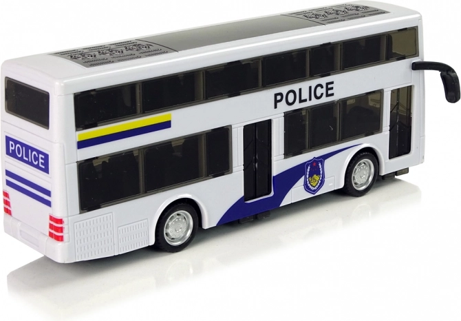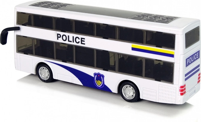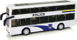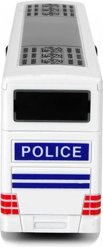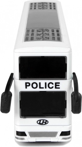 Razveselite male ljubitelje akcije s stilskim dvonadstropnim policijskim avtobusom. Zahvaljujoč navijalnemu pull-back pogonu se avtobus po navijanju sam požene, medtem ko svetlobni in zvočni učinki igri dodajo realistično atmosfero. Bel dizajn z modrimi detajli, napisom POLICE in emblemi deluje verodostojno kot pravo službeno vozilo.