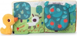 Knjiga je izdelana iz mehkega poliestra in polnjena s 100 % recikliranim materialom, kar jo naredi prijazno do narave. Zahvaljujoč enostavnemu pranju v pralnem stroju na nežen program je ta knjižica idealen spremljevalec za otroke že od 10 mesecev dalje, saj spodbuja njihovo domišljijo in čute.