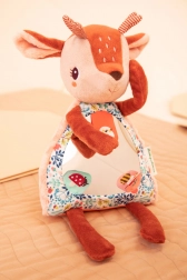 Tekstilna igračka jelenček Stella je idealna za otroke od 6 mesecev. Ta interaktivna igračka bo postala prvi prijatelj za vaše male raziskovalce. Magnetne ročice omogočajo igro na skrivanje, medtem ko ogledalo na trebuščku vabi otroke k odkrivanju svojega lastnega odseva. Ekološki materiali, iz katerih je igrača izdelana, zagotavljajo njeno varnost in preprosto vzdrževanje.