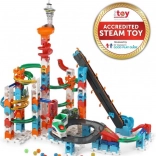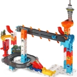Dolgi spusti, spirale in zanke prinašajo napetost in tekmovalno vzdušje. Opazujte dirkajoče kroglice in pripravite družinski turnir.