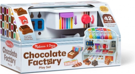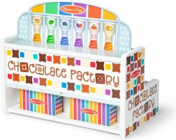 Ta barvit lesen set predstavlja miniaturno »čokoladnico«, kjer se lahko otroci igrajo vloge slaščičarja, prodajalca in kupcev. Igra vlog podpira besedni zaklad, komunikacijo in samostojnost. Zaradi robustne lesene izdelave je igrača trpežna in primerna za vsakodnevno igro.