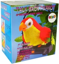 Ali vaš malček sanja o hišnem ljubljenčku? Če vedno vzdihuje nad pisanimi ptički v trgovini za male živali, izberite govorečega papagaja Pleciuga. To je neverjetno zabavna igrača, ki bo natančno ponovila vse, kar rečete. Pazite le, da mu ne zaupate nobene skrivnosti – ta klepetavi ptič pove vse! Možnosti uporabe igrače je veliko: otrok lahko govori ali poje, nato pa posluša, kako papagaj posnema njegov glas, odlično presenečenje pa bo tudi za prijatelje malčka, ki bodo nepričakovano slišali svoje besede iz ptičjega kljuna.